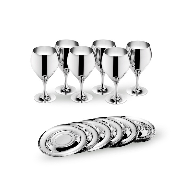 Zahvaljujući debljini zidova čaša i materijalu od kojeg su izrađene, svjetlost i temperatura ne utječu na kvalitetu pića. Najsuvremenija tehnologija primijenjena u oblikovanju i završnoj obradi proizvoda čine ih vrlo cijenjenim širom sveta. Ekskluzivan, lijep i uvijek moderan dizajn odgovara svakom interijeru. Svaki dio seta napravljen je od nehrđajućeg čelika vrhunske kvalitete (CrNi 18/10).